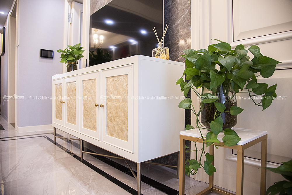與業(yè)主的初次見面,就明確裝修風(fēng)格美式輕奢,即所謂:“一見美式,又見輕奢”,現(xiàn)代的奢華,美式的韻味,無不彰顯業(yè)主對高品質(zhì)生活的追求。設(shè)計(jì)中搭配大理石,金屬材質(zhì)吊燈,羽絨沙發(fā)以精致考究的軟裝配飾,每一元素盡不著痕跡的透露對于精致生活的追求。巧妙豐富的色彩疊加,置身其中,整個(gè)空間彌漫一種輕而柔的氣質(zhì),給人視覺與心靈的雙重震撼,每一處細(xì)節(jié)都顯現(xiàn)出對簡約生活方式的崇尚。巧妙的運(yùn)用跳色的軟裝,打破了整體空間的沉靜,給整體空間增添活力。如果沒有感情的設(shè)計(jì),談不上好的設(shè)計(jì),融情于景,情景交融,時(shí)光繾綣,歲月安好便是美式輕奢氣質(zhì)的最佳演繹。張博文