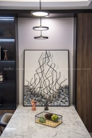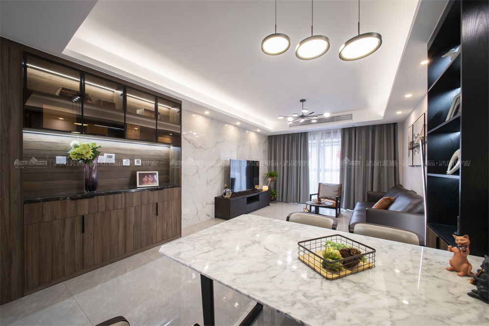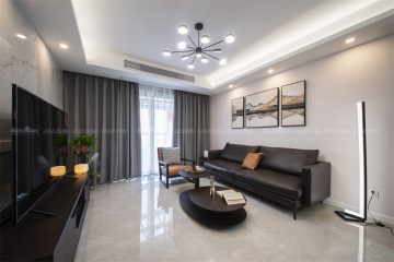 現(xiàn)代簡約,把所有繁復(fù)的設(shè)計轉(zhuǎn)變?yōu)楦蛹兇獾暮喖s,用自然清晰的方式去詮釋 家裝、詮釋生活。簡單大方的空間格局,搭配上簡約舒適的家具軟裝,讓人置身其中感 受到的是一種輕松的自然。
