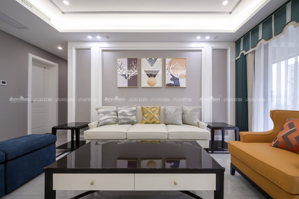 現(xiàn)代美式糅合了歐式的奢華熱情、復(fù)古優(yōu)雅與北歐的簡潔清新,清新不失熱情,典雅而不沉重,獨(dú)有一種浪漫情調(diào),傳達(dá)出自由休閑的生活主張。