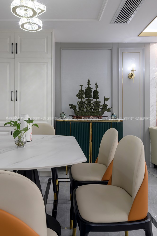 美式輕奢并非是只有美式的厚重感,增加些現(xiàn)代元素進(jìn)去,讓空間更加有層次感??臻g里自然的色彩賦予生命力量,是能夠穿越時(shí)光經(jīng)久不衰,感情之豐富也給了設(shè)計(jì)空間更多的靈感和寄托。